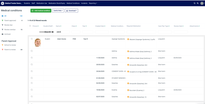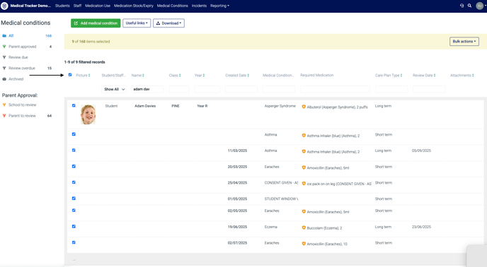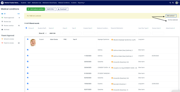 If there is a student or staff member's condition that is short-term or no longer exists, you can archive the condition record on Medical Tracker and still have access to the record. This can now be done in bulk.