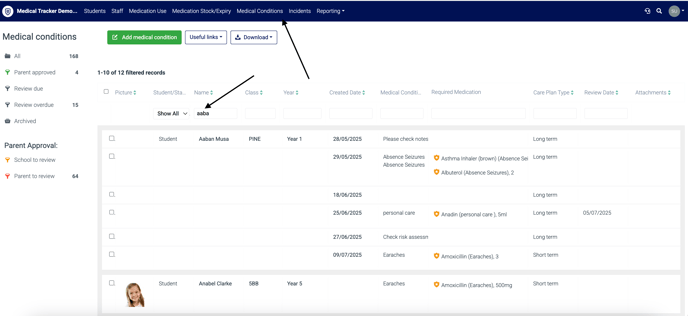 Firstly, Please ensure that the medical condition has been added regarding the students. To do this, Please follow this article here - How to add a Medical Condition