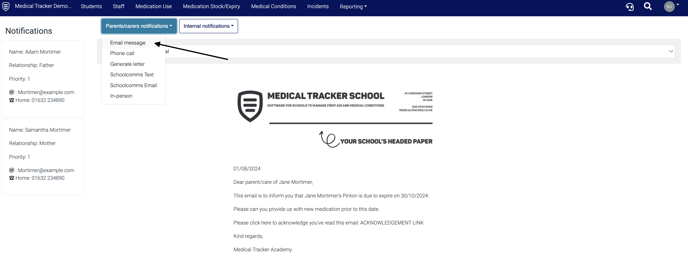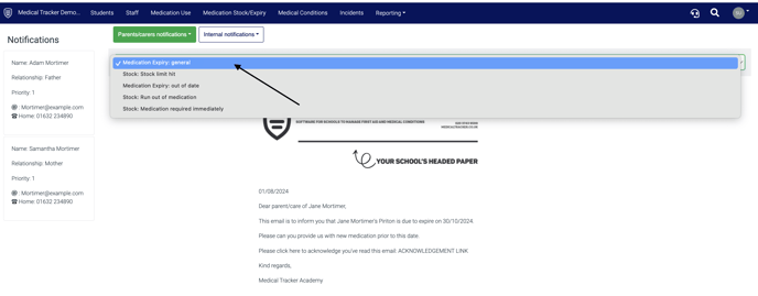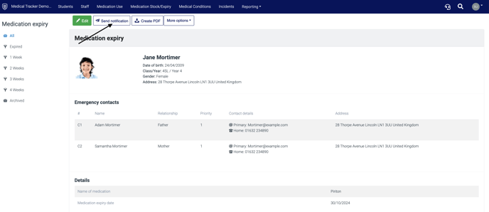 When students have a medical condition that requires medication, you can notify parents/carers when this is due to expire to ensure the medication is always safe.