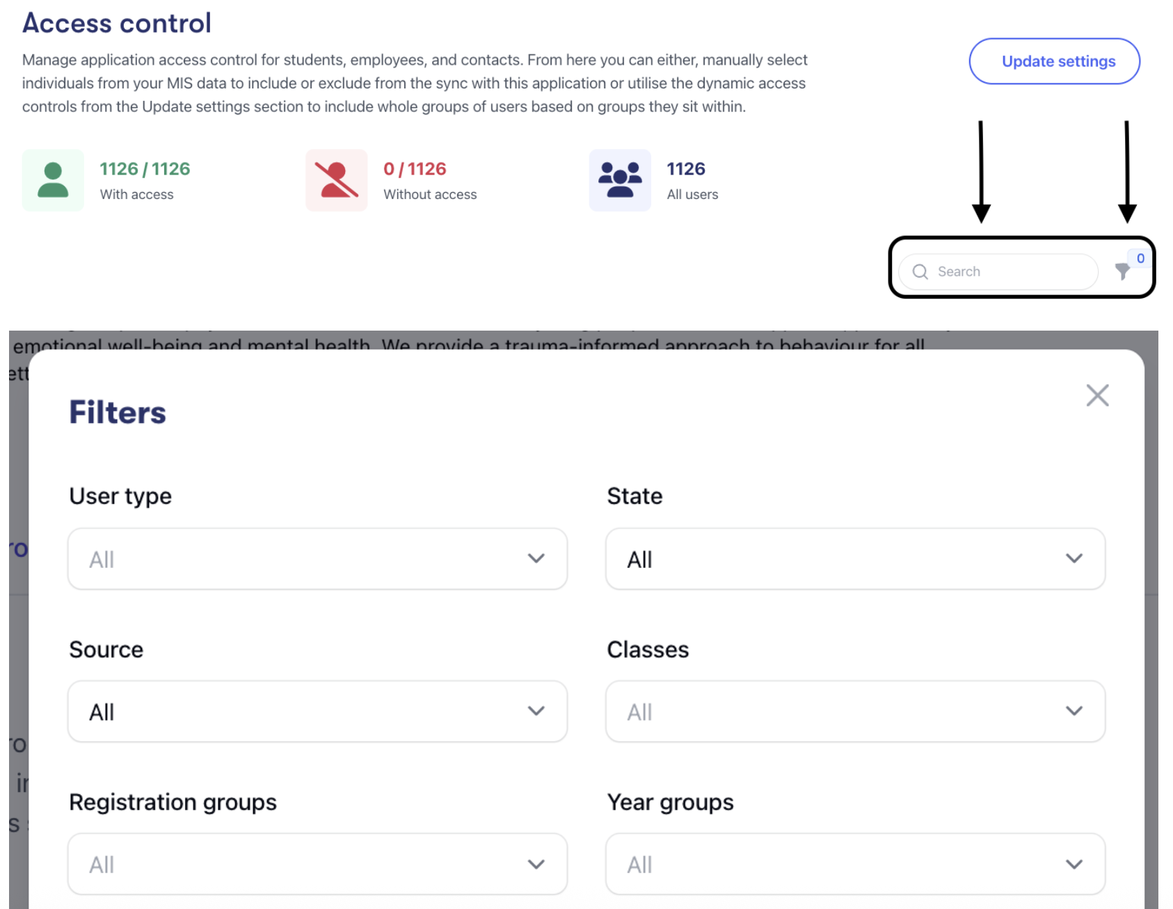 9. You can use the search filter to locate a user by name, or the filters for registration groups, classes or year groups.![]()